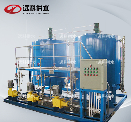 為達到最佳效果,在工況變化的情況下,對所加化學藥劑量自動跟蹤調節控制加藥速度,因此在這種裝置中,BJF智能型全自動加藥設備結構簡單、安裝方便。主要由計量箱(藥劑貯罐)、計量泵加藥泵)、自動控制系統、連接管路等組成。除部分加藥管路、取樣管路和加藥濃度檢測儀表外,這些設備一般都集中安裝在一個加藥間內,自動加藥裝置將計量箱、計量泵、自動控制系統一體化,即安裝在一個底座上。