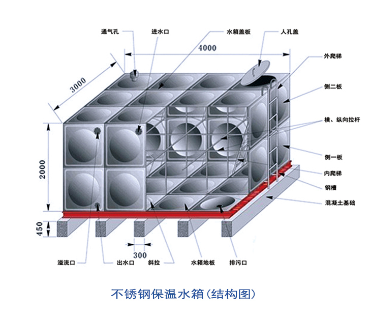 •        1、不銹鋼保溫水箱一般采用SUS304材質的不銹鋼板材,物理化學性質穩定,對水質沒有污染,保證水質清潔衛生;