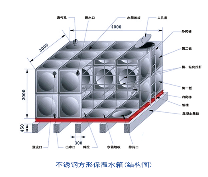 易于安裝,任意組合:不銹鋼標準模板采用工廠批量壓制,現(xiàn)場焊接組裝,可以根據(jù)客戶的要求設計、制造、組裝,水箱可任意拼裝;